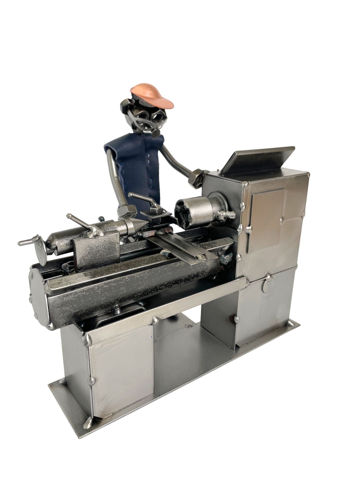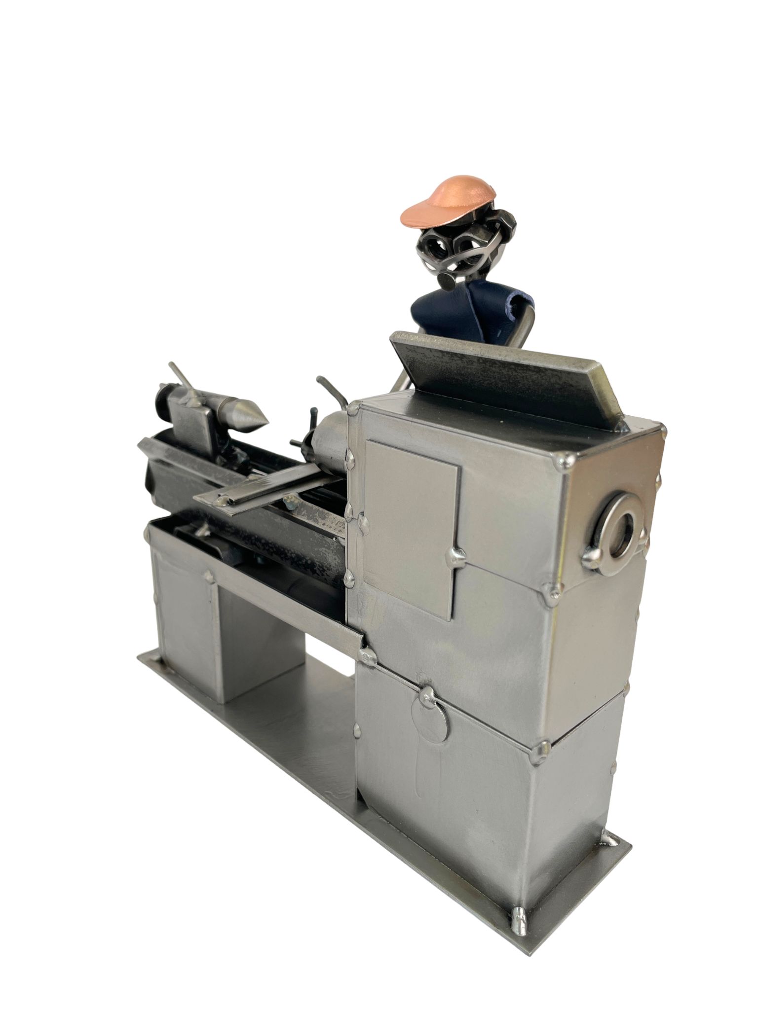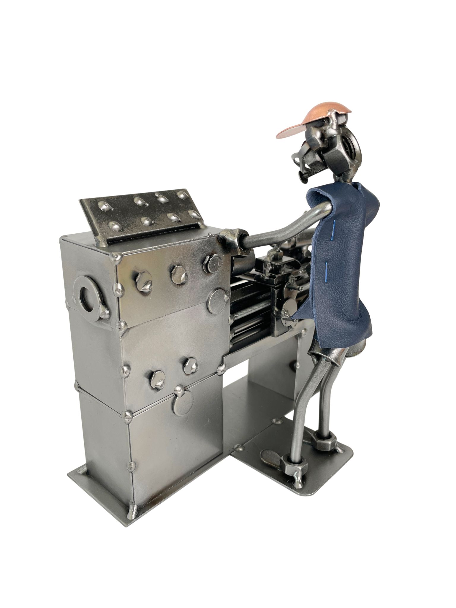 Metalowa figurka tokarza to wyjątkowy prezent dla mechanika, tokarza lub osoby pracującej przy obróbce metalu.