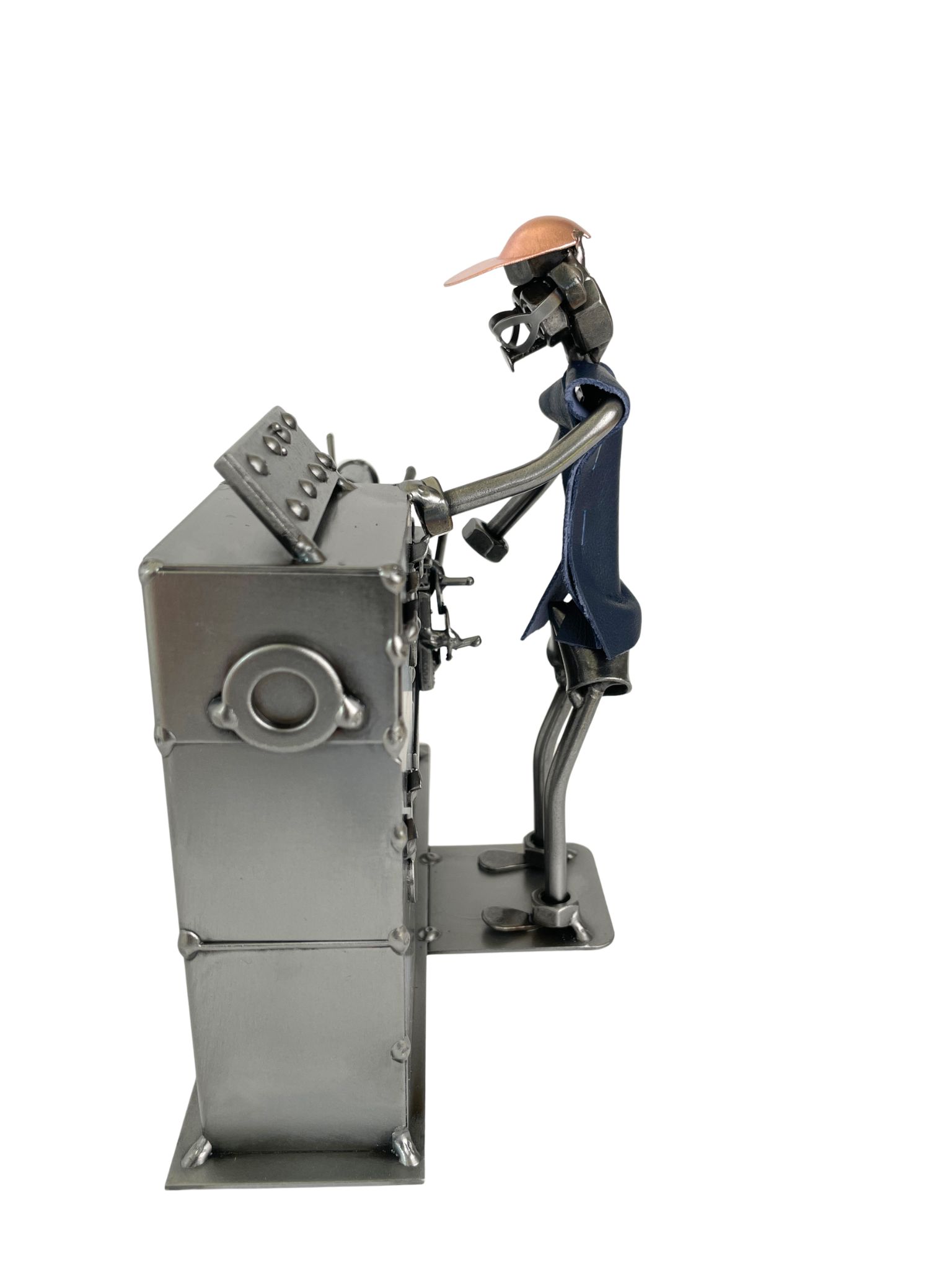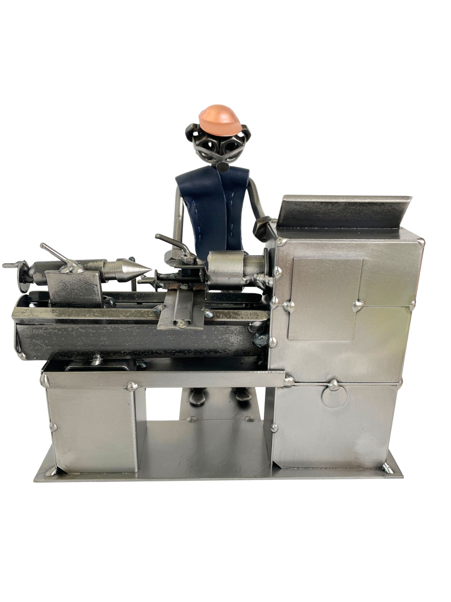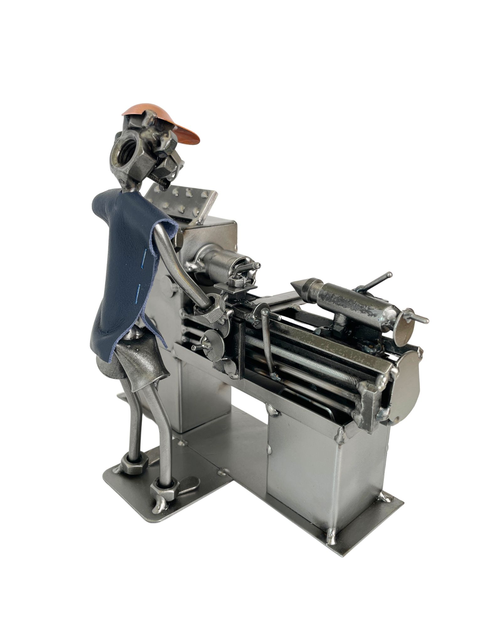 Metalowa figurka tokarza to wyjątkowy prezent dla mechanika, tokarza lub osoby pracującej przy obróbce metalu.