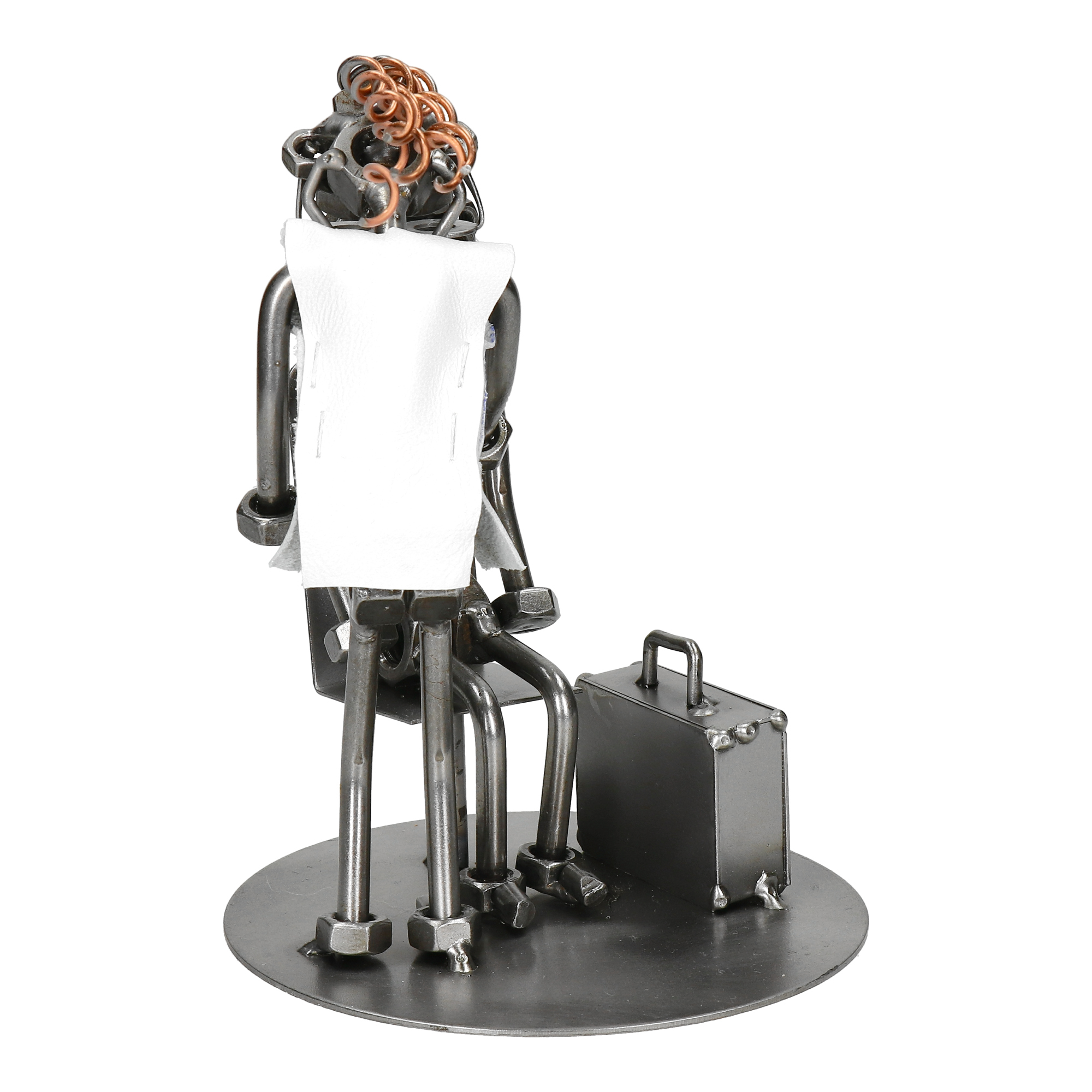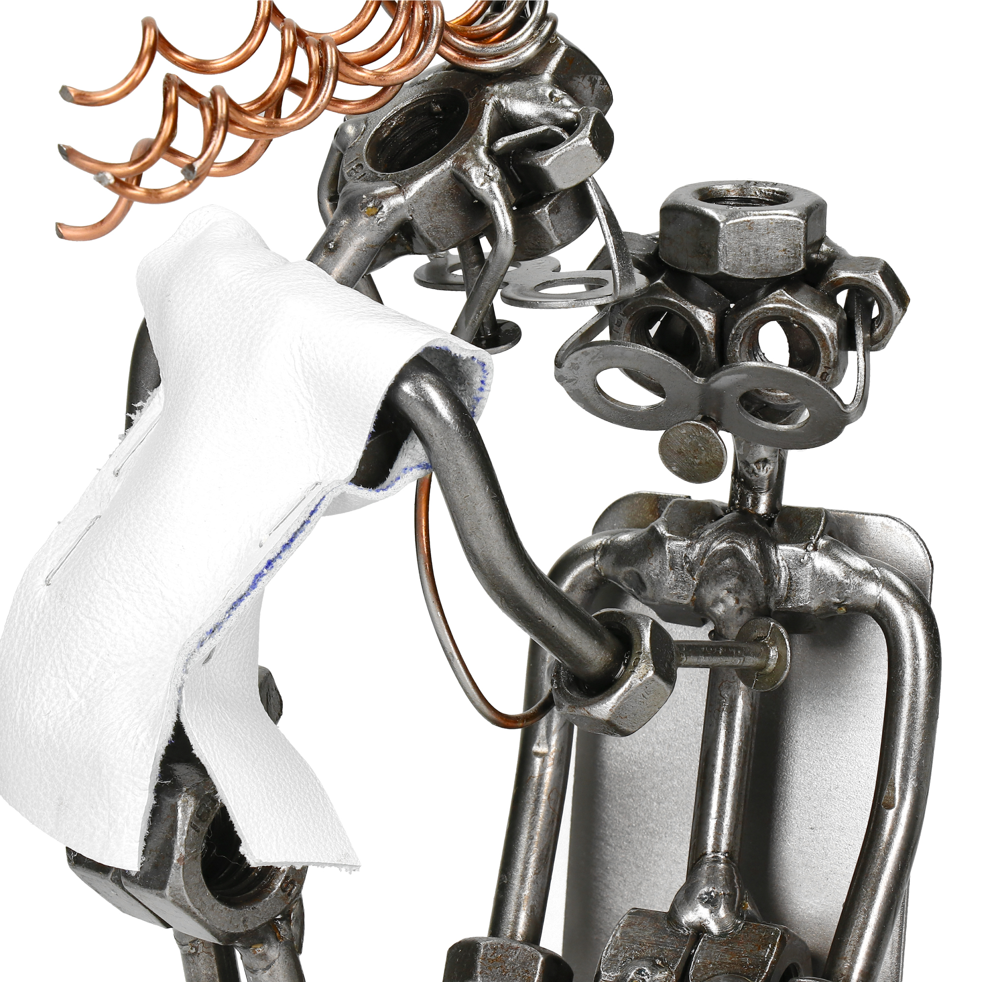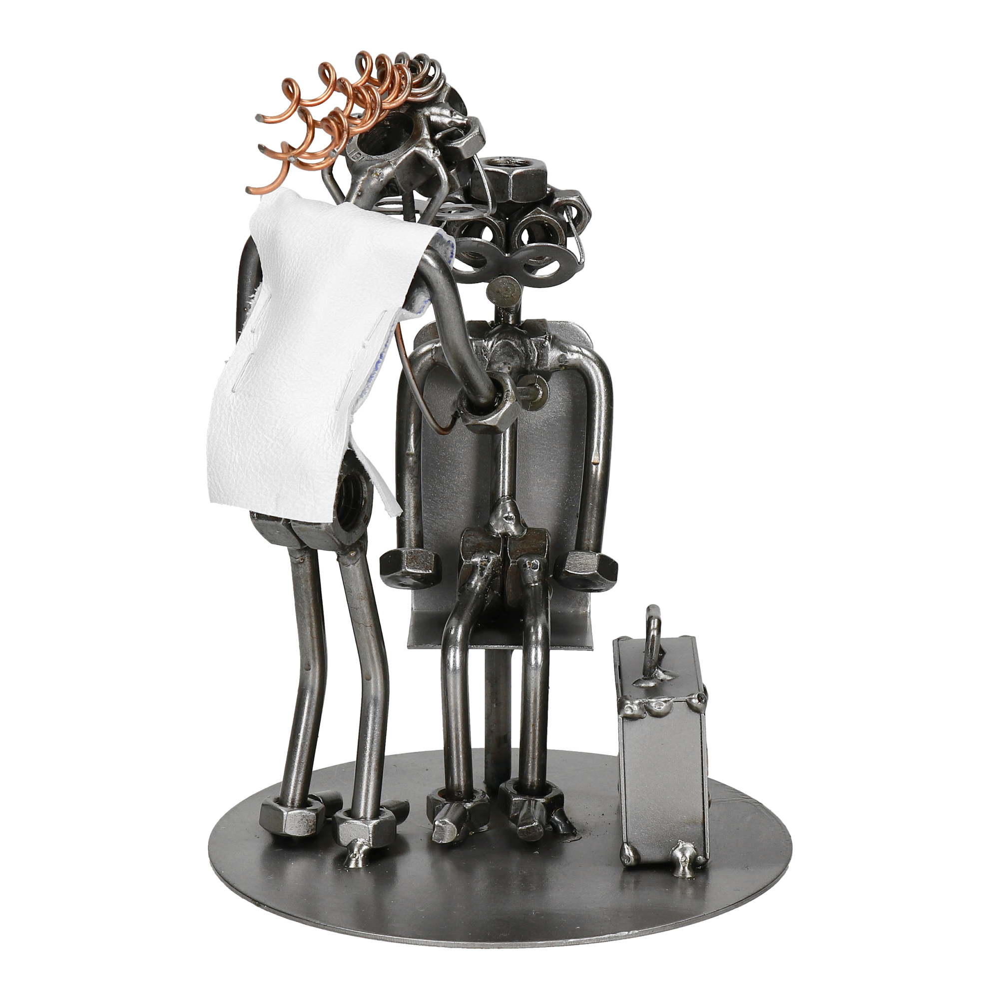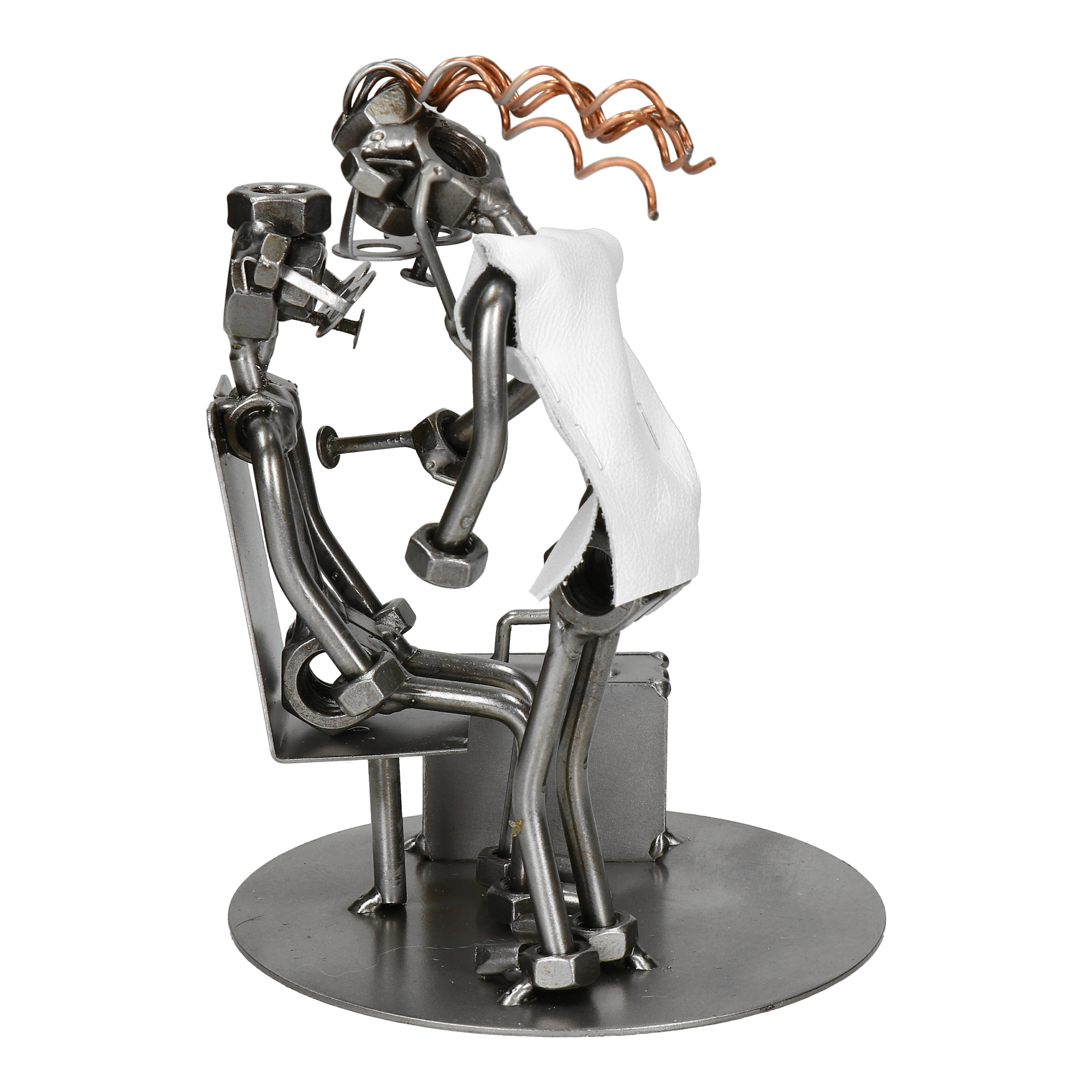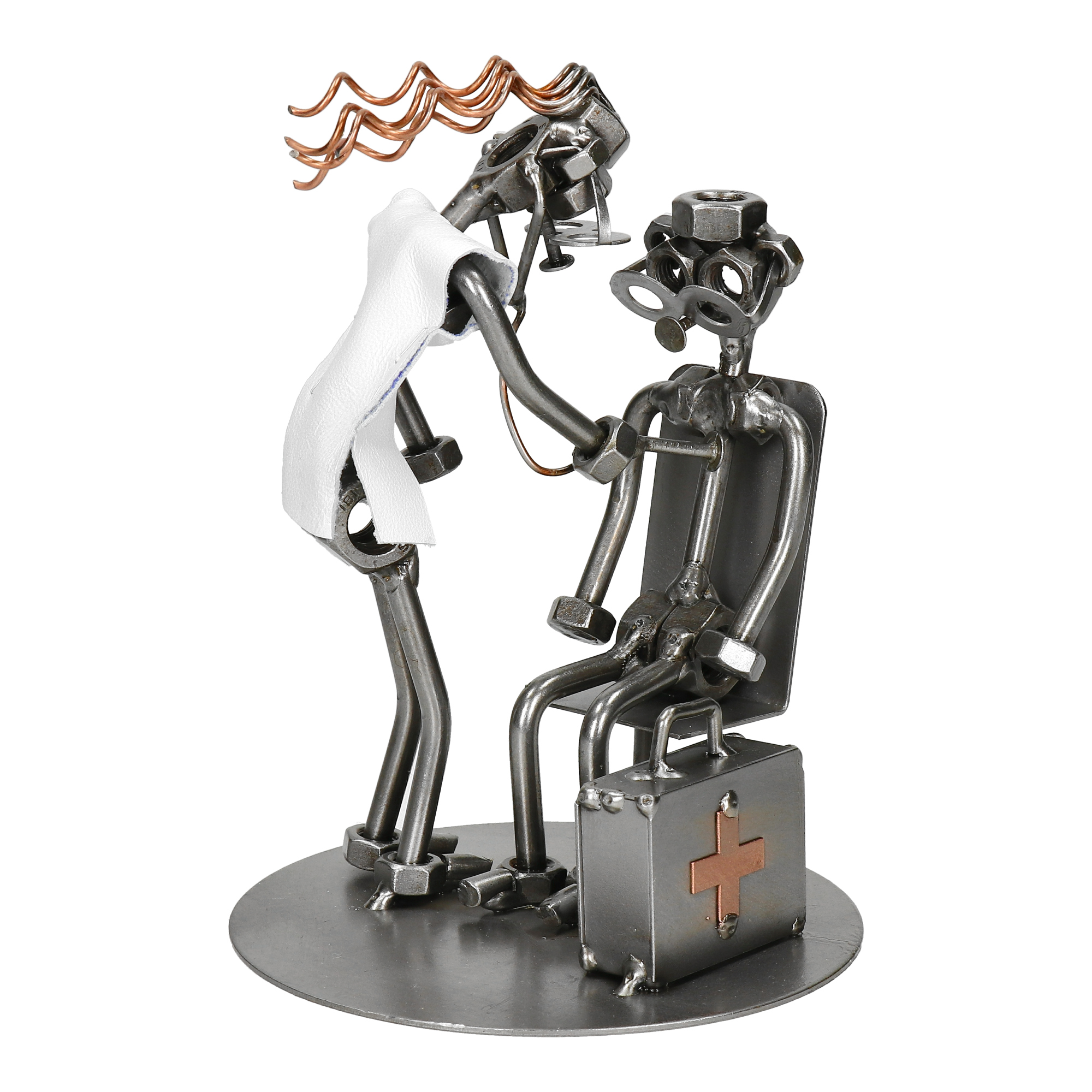 Przedstawiamy wyjątkową, ręcznie wykonaną metalową figurkę przedstawiającą panią doktor podczas wizyty z pacjentem. Stworzona z metalowych elementów takich jak śrubki, nakrętki i druty, zachwyca starannością, realizmem oraz lekkim, humorystycznym akcentem. Idealnie oddaje codzienną pracę lekarza i świetnie sprawdzi się jako dekoracja lub prezent.