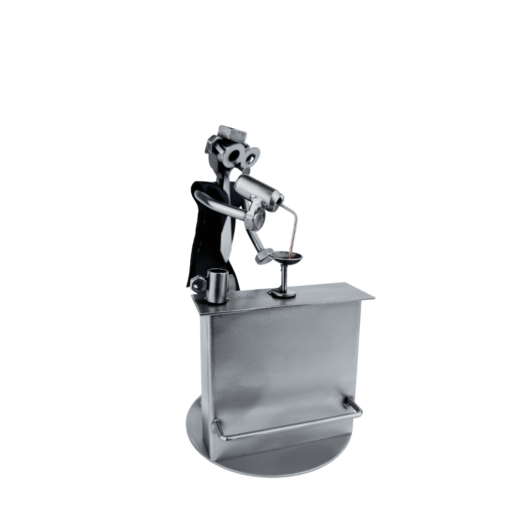 Ta ręcznie wykonana metalowa figurka barmana to doskonały wybór jako prezent