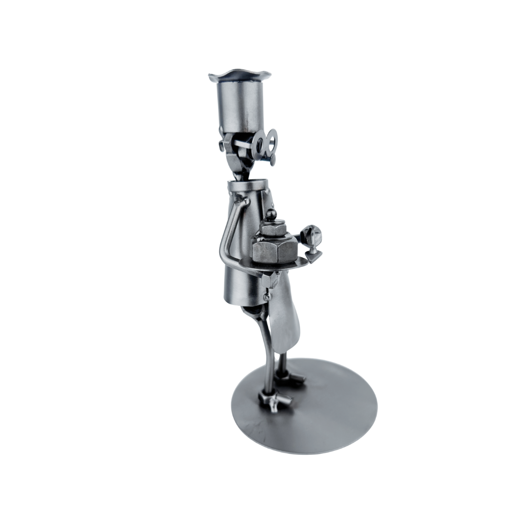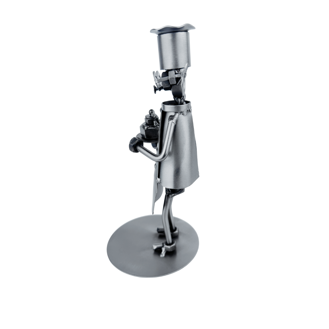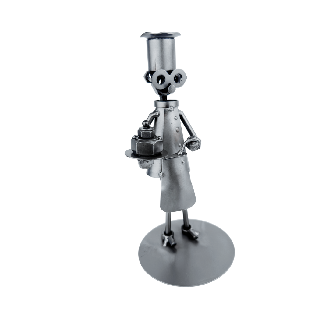 Ta ręcznie wykonana metalowa figurka cukiernika to idealny wybór na prezent