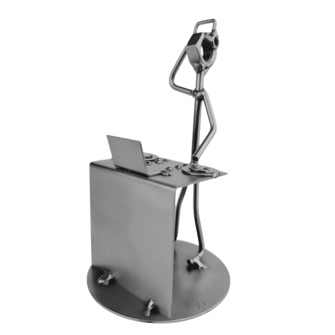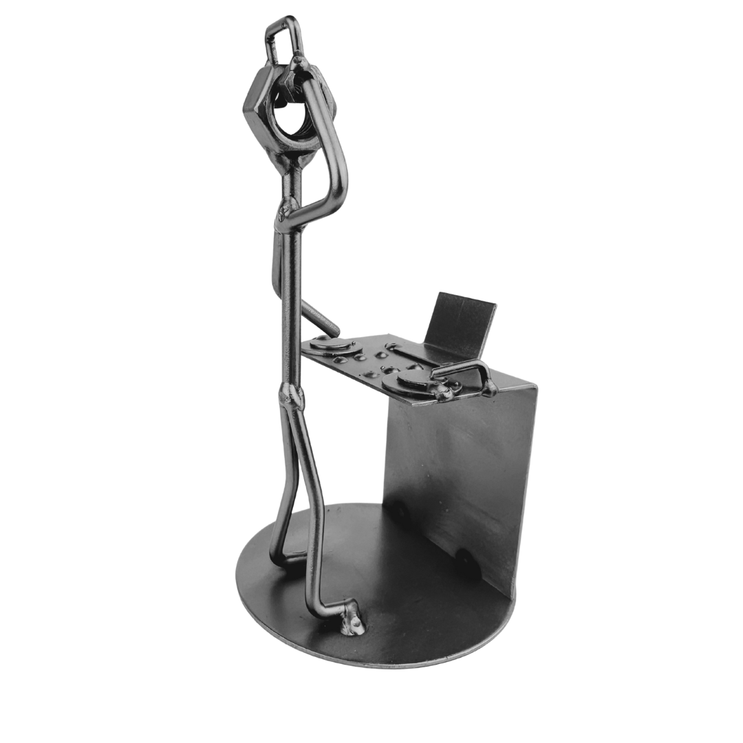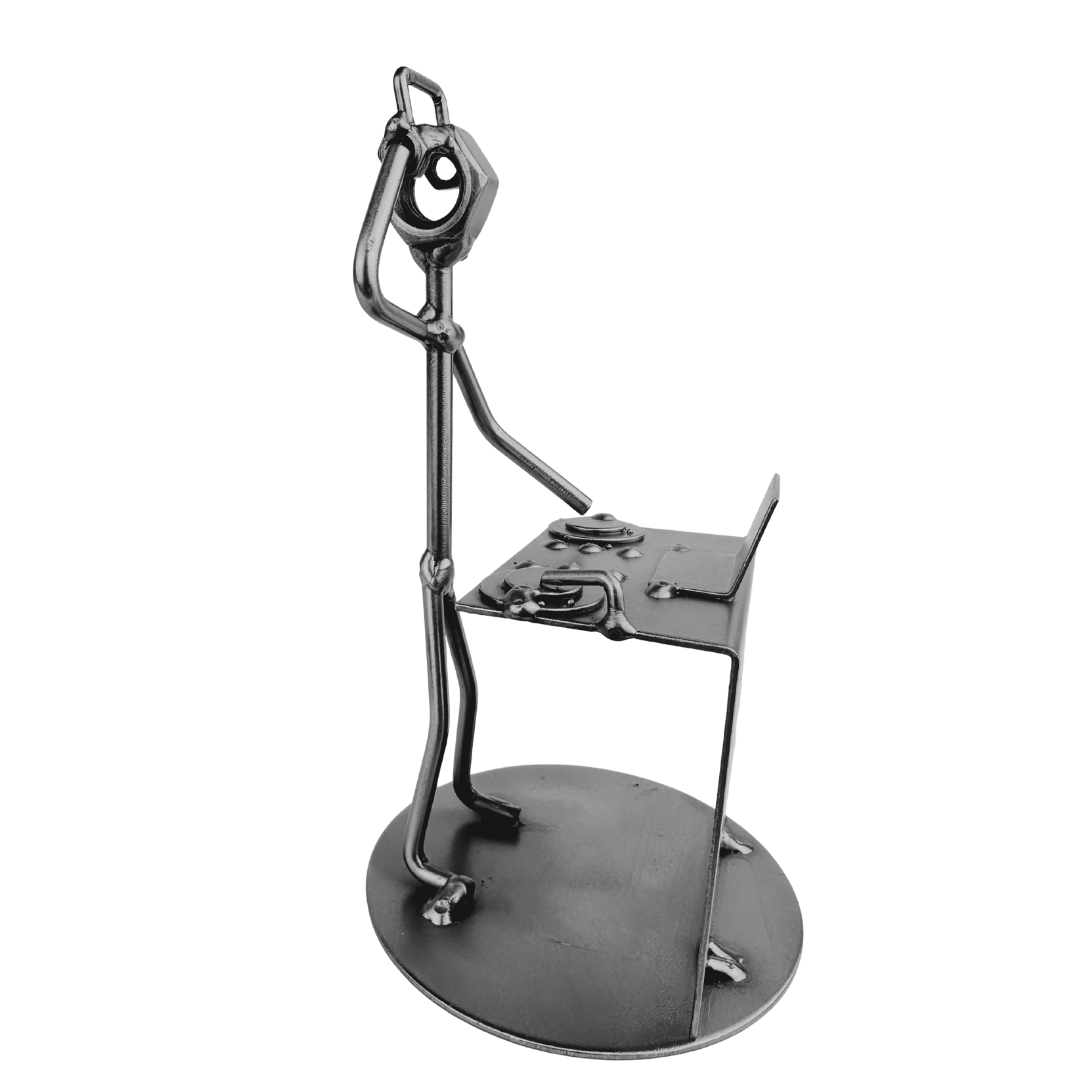 Ta ręcznie wykonana metalowa figurka DJ-a to wyjątkowy i symboliczny