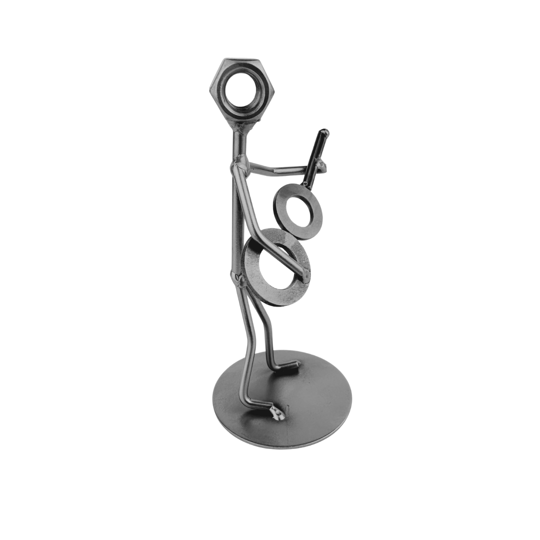 Ta ręcznie wykonana metalowa figurka gitarzysty to oryginalny